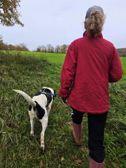 Als ich den 7-jährigen Mischling Pache das erste Mal sah, machte ich mich auf einen anstrengenden Ausflug gefasst. Aber ganz im Gegenteil ….. unser Ausflug war sehr angenehm. Trotz Patches Größe konnte ich ihn ohne große Anstrengung halten. Glücklicherweise haben wir keine Wilde gesehen. 😉